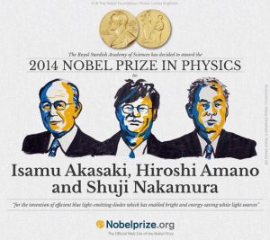 Giải thưởng Nobel Vật lý 2014 vừa công bố dành cho các nhà khoa học Isamu Akasaki, Hiroshi Amano và Shuji Nakamura với phát minh một nguồn ánh sáng thân thiện với môi trường và tiết kiệm năng lượng.